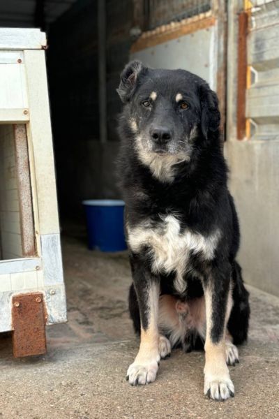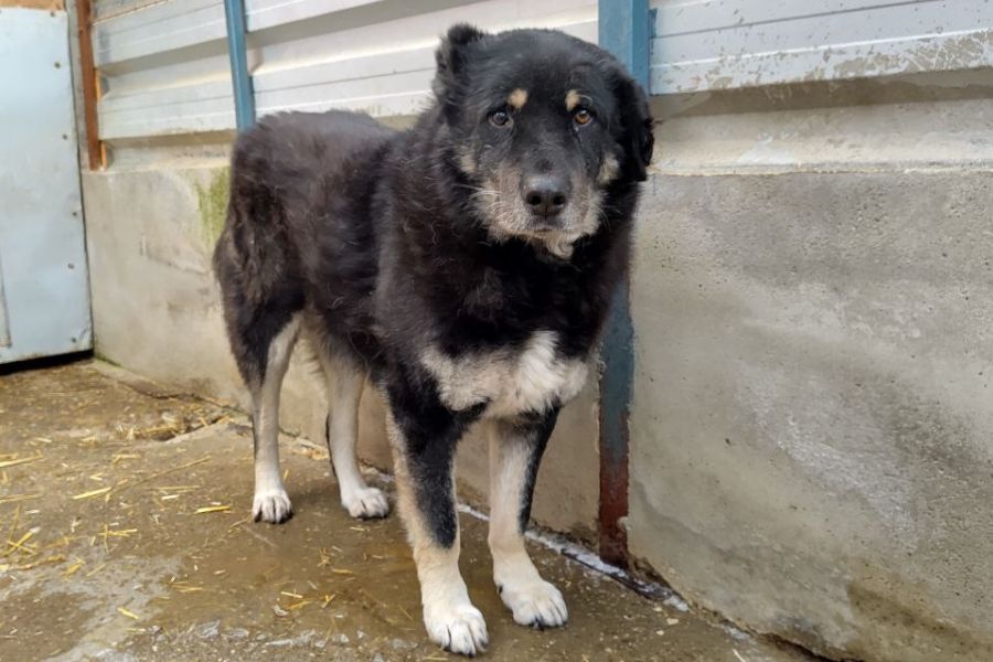 Mittlerweile ist Bruno neugieriger geworden und scheint den Menschen mehr vertrauen zu können. Er wedelt sogar freudig mit dem Schwanz. Mit etwas Geduld nimmt Bruno auch schon Leckerchen aus der Hand. Auf Zuruf kommt er ein wenig näher ans Gitter und zeigt leichtes Schwanzwedeln, ohne zu bellen. Er schnuppert gelegentlich an Händen oder Hosenbeinen, zieht sich aber zwischendurch wieder auf Distanz zurück. Er beobachtet gerne seine Umgebung und bleibt insgesamt zurückhaltend. Streicheln ist aktuell noch nicht möglich, er reagiert auf ausgestreckte Hände mit leicht ausweichendem Blick und weggeneigtem Kopf, bleibt dabei aber stehen. Er zeigt sich auch bei Geräuschen oder Schreckreizen gelassen: Einmal kurz zusammengezuckt, verhielt er sich danach wieder ruhig. Bruno liegt häufig ruhig im mittleren Bereich des Zwingers und lässt sich auch bei Reinigungsarbeiten oder vorbei gehenden Personen nicht aus der Ruhe bringen.