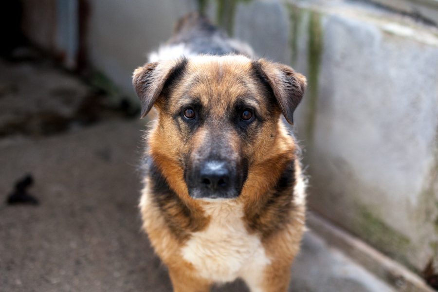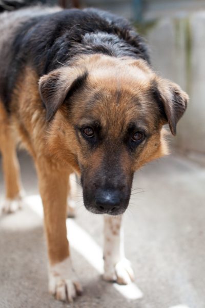 Flenni hat eine verkürzte Rute und ist vermutlich ein Schäferhund-Mix.