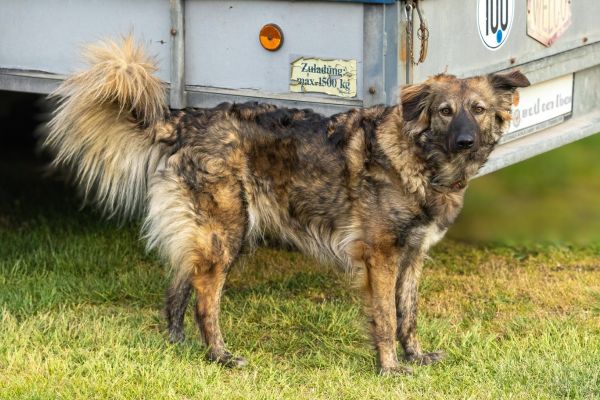 Die etwa 3-jährige Hündin ist sportlich, bewegungsfreudig und liebt es, aktiv zu sein. Draußen zeigt sie sich neugierig, verspielt und voller Energie, drinnen dagegen genießt sie Nähe und ausgedehnte Kuschelzeiten. Am liebsten liegt sie in der Sonne, lässt sich das Fell wärmen oder spielt ganz begeistert mit kleinen Stöckchen, die sie in die Luft wirft – als hätte sie ihr eigenes kleines Spiel erfunden.