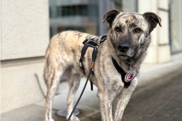 Der etwa 2 Jahre alte Rüde lebt aktuell auf einer Pflegestelle in Deutschland. Dort zeigt er jeden Tag, wie viel Liebe und Sanftheit in ihm steckt.