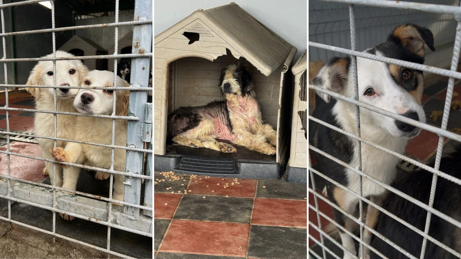 Hier zeigen wir dir erste Aufnahmen der Hunde, wie wir sie gestern vorgefunden haben. Wir möchten sie dort so schnell wie möglich rausholen und benötigen hierfür jede Unterstützung!