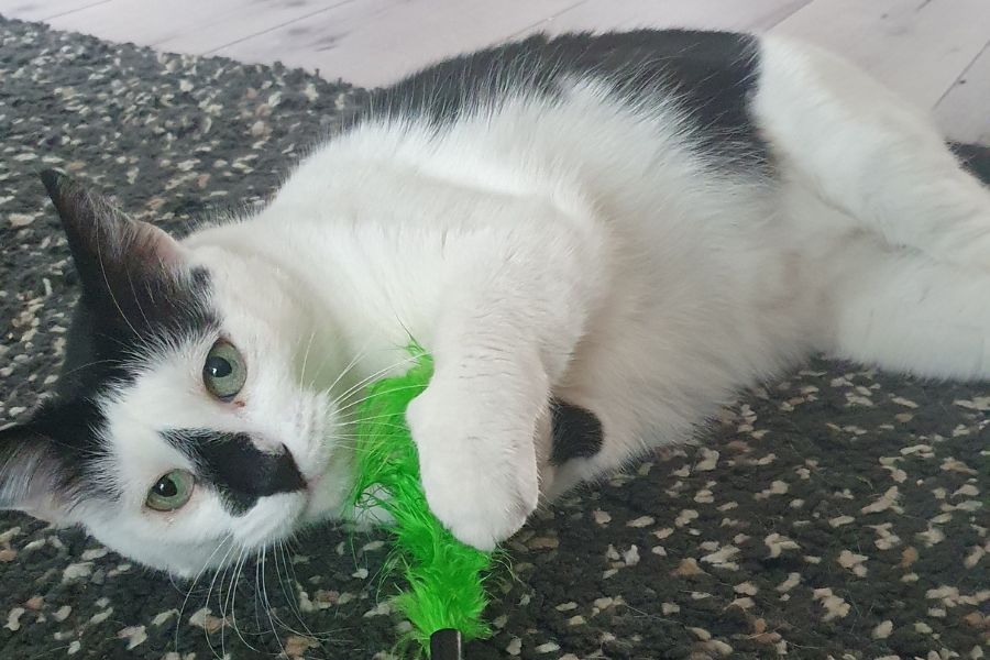 Sie brachte uns auch einen Maulwurf, der aber glücklicherweise noch die Flucht ergreifen konnte. Den Vormittag danach hat sie wahrscheinlich komplett durchgeschlafen. Die Tage danach war sie aber immer pünktlich zu Hause und musste bisher keine Nacht mehr draußen verbringen. Rosa ist sehr gerne draußen und wenn sie einfach nur entspannt auf der Couch auf der Terrasse liegen kann. Abends holt sie sich dann ihre Kuschel- und Spieleinheiten von uns ab.“